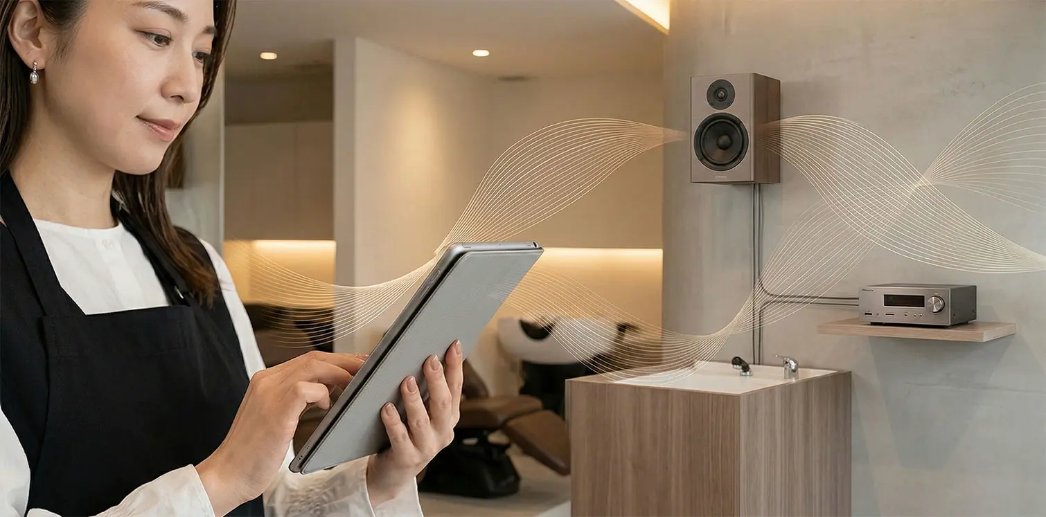 美容室の音響は、お客さまの満足度を左右する大切なおもてなしです。適切な機材配置と楽曲選びで、居心地の良い空間をつくりましょう。