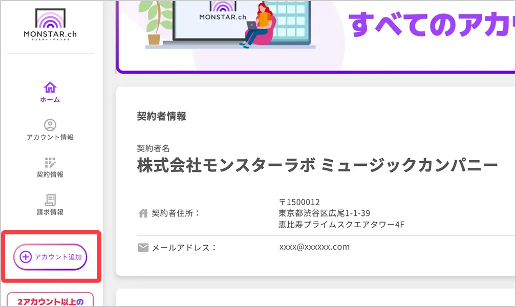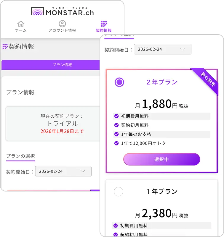 詳しくは、モンスター・チャンネルの契約方法をご確認ください。