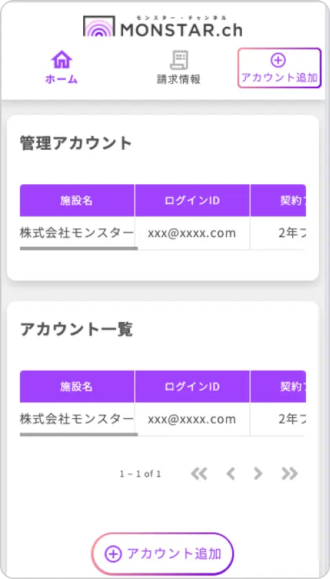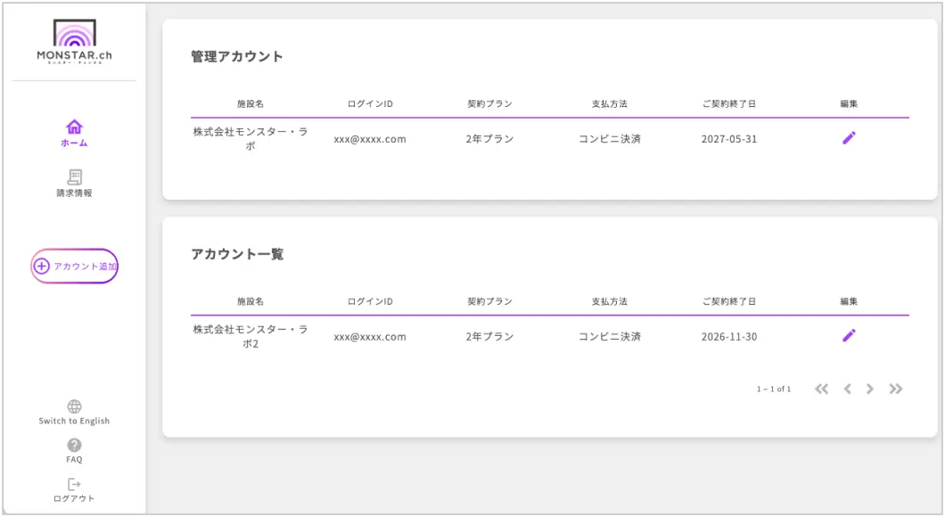 管理アカウント(親アカウント)で、子アカウントの管理が可能になります。各アカウントの管理画面から契約内容の変更等を行う場合と比べて、管理コストの削減になるというメリットがあります。